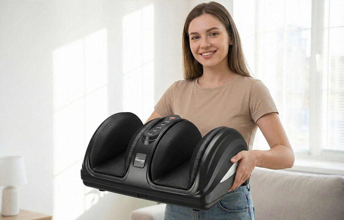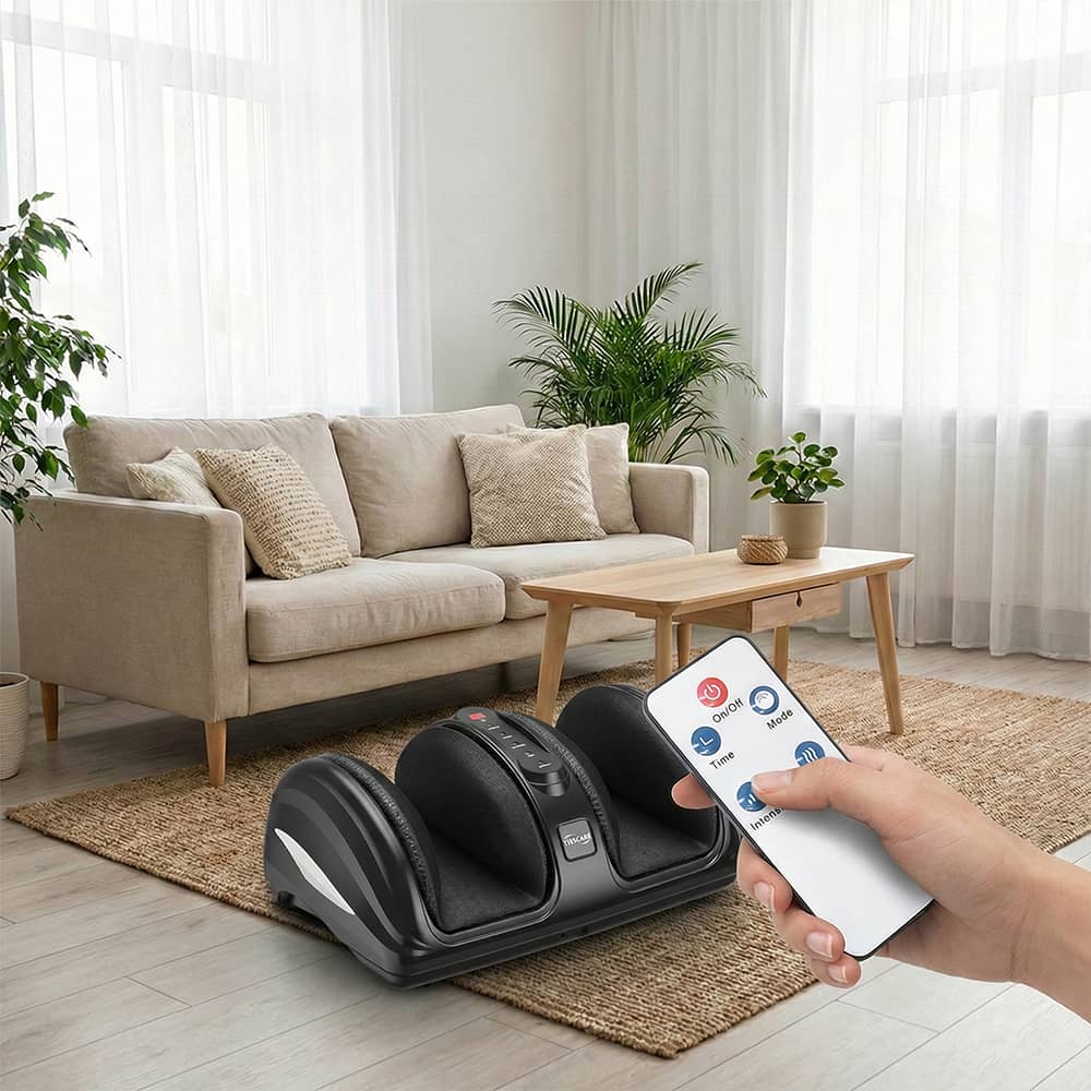 Think of it as an Air Compression Foot Massager that does more than just squeeze. It uses rolling nodes and Shiatsu-style kneading to reach deep into muscles, not just the surface. The heated feature turns each session into a cozy ritual: circulation improves, stiffness fades, and soreness after long days disappears. Whether you sit or stand all day, this Tisscare massage foot massager brings professional‑level comfort to your home.